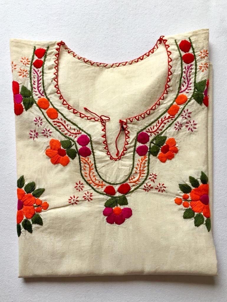This high quality hand embroidered blouse made by Mexican artisans from Oaxaca goes well with all outfits, it’s bright orange flowers gives it a original flare that can be greatly combine in a formal or casual outfit.